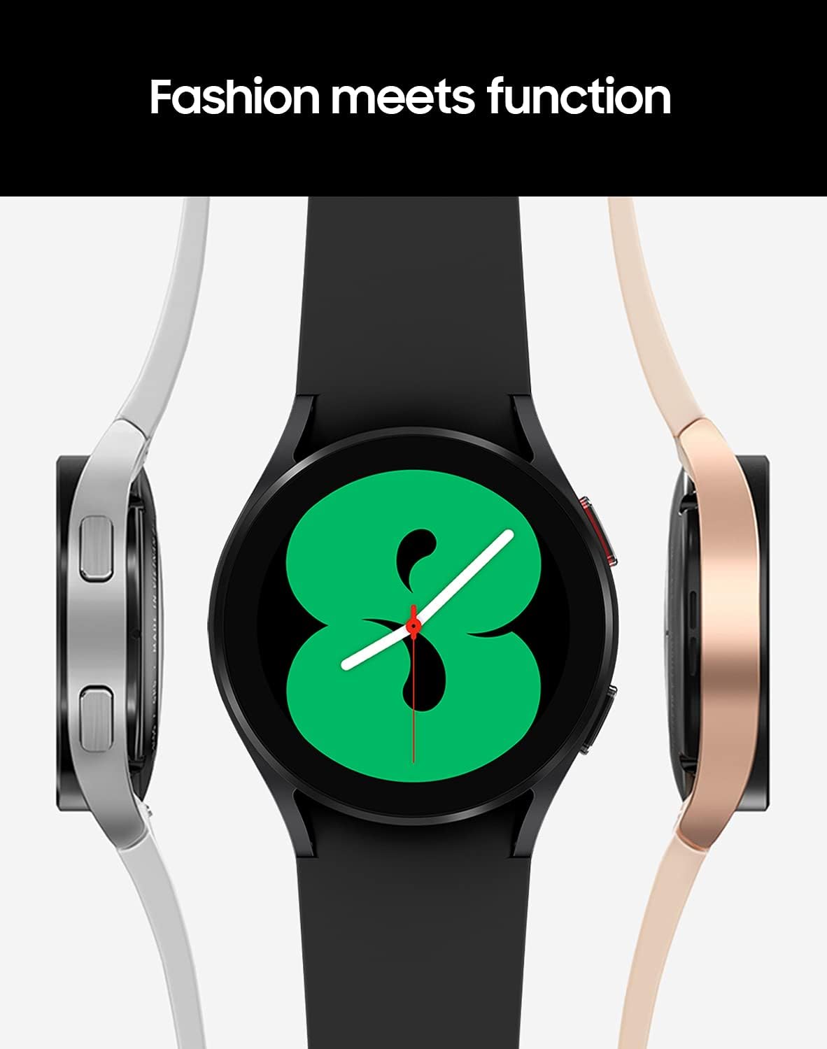 Your style. Your health. Look good and feel great with your smart, new companion, Samsung Galaxy Watch4. Make a stylish statement with an iconic silhouette and stainless steel casing, while your watch keeps you in tune with your health and pushes your fitness goals further. Make the most of every run with advanced coaching and oxygen level monitoring that help you exercise smarter while increasing endurance. Leave your phone behind while staying connected call, text and stream music, all from your wrist with LTE connectivity. Galaxy Watch4 is health evolved. *The SpO2 measurement software is not intended for use in the diagnosis of disease or other conditions, or in the cure, mitigation, treatment or prevention of disease. The snoring measurement requires smartphone with Android 6. 0 or later, 1. 5GB of RAM, phone within 2 feet of user, with snore detection enabled through Samsung Health app version 6. 18 or higher. Requires Samsung Health app version 6. 18 to view history. *For clinical trial results concerning the accuracy of the ECG monitor. ECG monitor app is not intended to replace traditional methods of diagnosis or treatment and is for information purposes only. The ECG monitor app is not intended for users with known arrhythmias other than atrial fibrillation or users under 22 years old. Users should not interpret or take clinical action based on the device without consultation of a qualified healthcare professional. Reαuires Samsung Galaxy smartphone with Android 7 or later and Samsung Health Monitor app available only at the Samsung Galaxy app store. *Water-resistant up to 50 meters per ISO standard 22810:2010. Not intended for scuba diving. Avoid excessive, sudden temperature changes and high-velocity activities. Rinse in fresh water/dry after use in sea water or chlorinated water. This device and related software are not intended for use in the diagnosis of disease or other conditions, or in the cure, mitigation, treatment, or prevention of disease. *Accurate VO2 max reading requires running outdoors for at least 20 minutes with GPS on; consult user manual before use. This device and VO2 measurement software are not intended for use in the diagnosis of disease or other conditions, or in the cure, mitigation, treatment, or prevention of disease. *Compatible with select Bluetooth capable smartphones running Android 6. 0 or higher and RAM above 1. 5GB. Galaxy Watch4 Series supported features may vary by carrier and compatible device. For best results, connect with compatible Samsung Galaxy smartphones. *Google is a trademark of Google LLC. Google, Google Assistant, and YouTube Music are tr.ademarks of Google LLC. *Select interchangeable watch bands sold separately.The product is multiple voltage compatible, that voltage arrange is 100-240V.